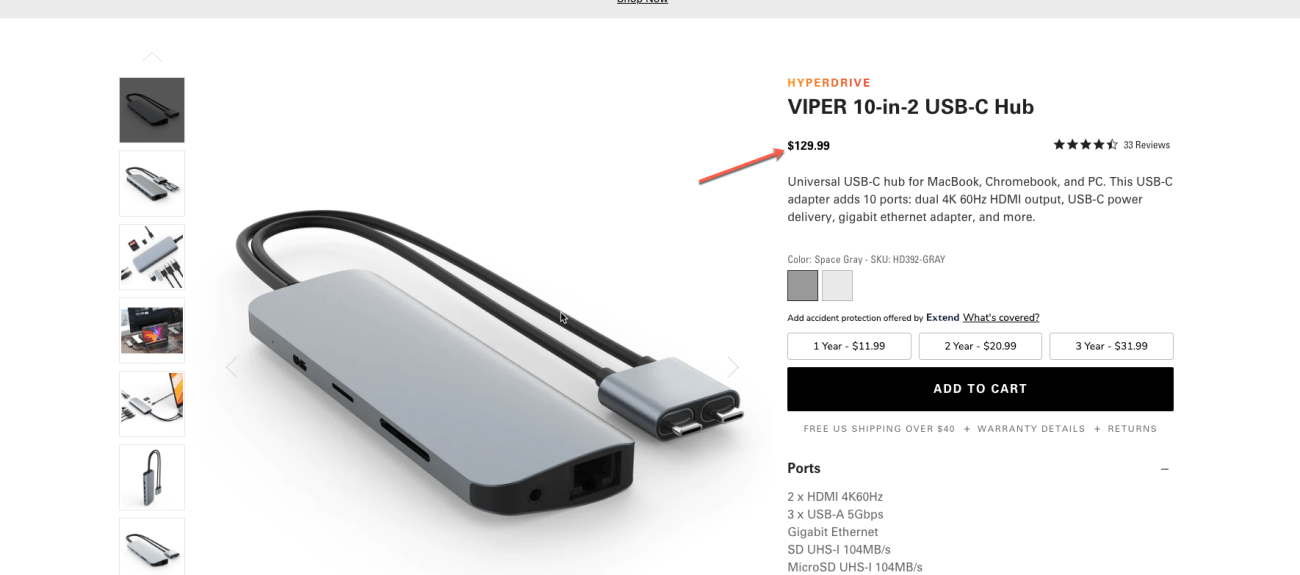 Turns two USB-C ports into 10 ports with 2 x 4K 60Hz HDMI, 3 x USB-A, Gigabit Ethernet, MicroSD/SD, 60W USB-C power delivery, and a 3.5mm audio jack.