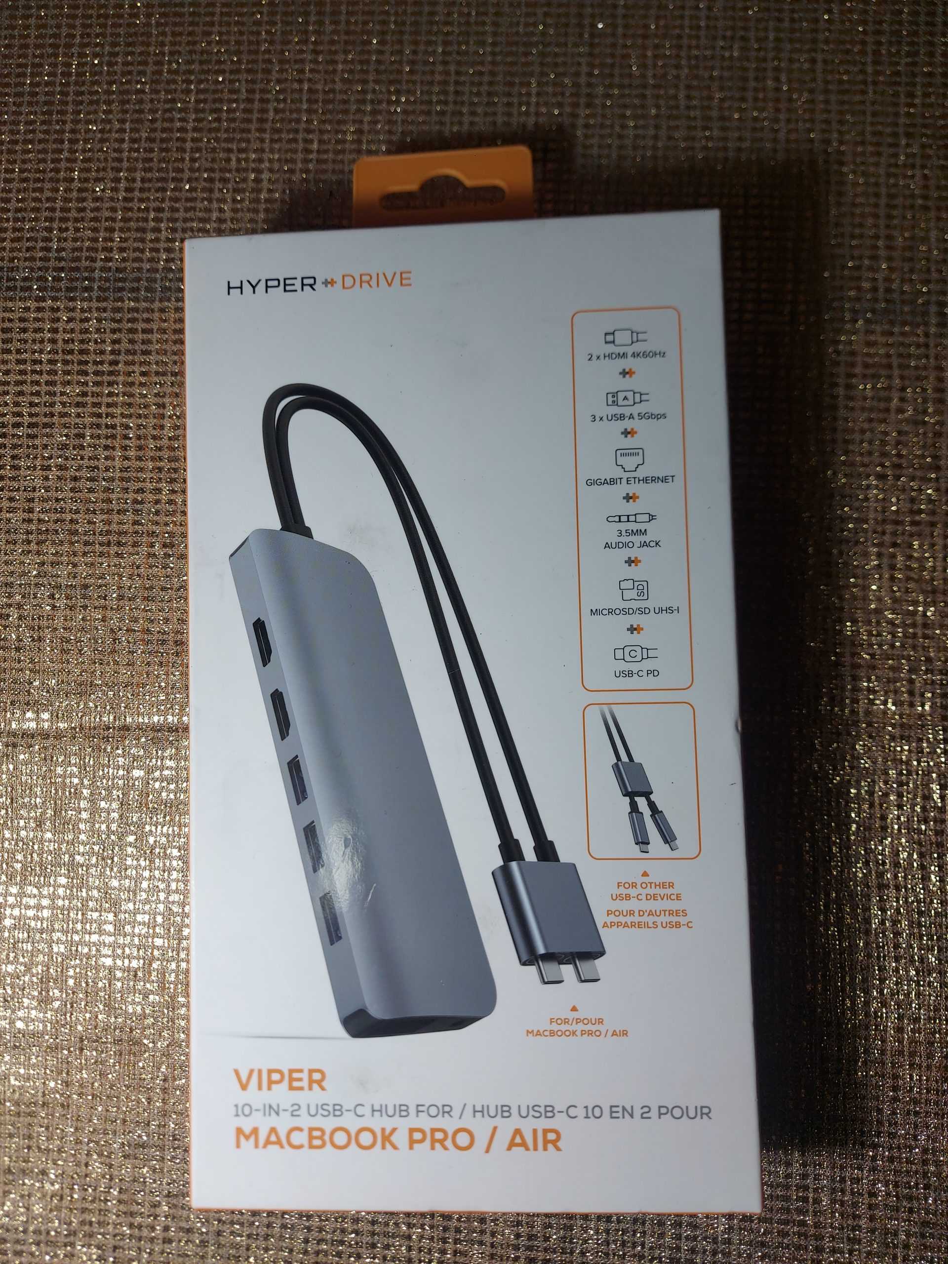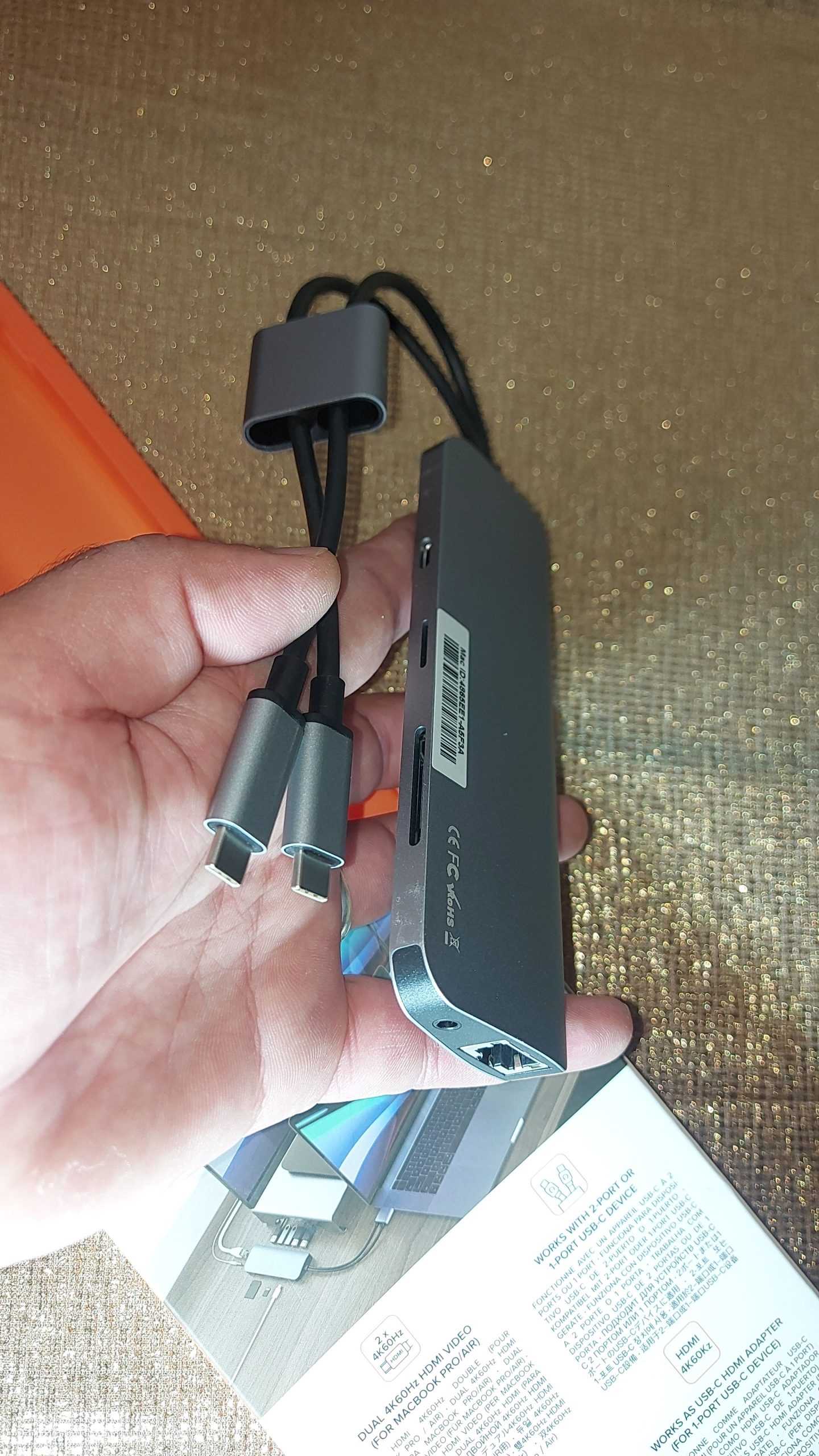 Turns two USB-C ports into 10 ports with 2 x 4K 60Hz HDMI, 3 x USB-A, Gigabit Ethernet, MicroSD/SD, 60W USB-C power delivery, and a 3.5mm audio jack.