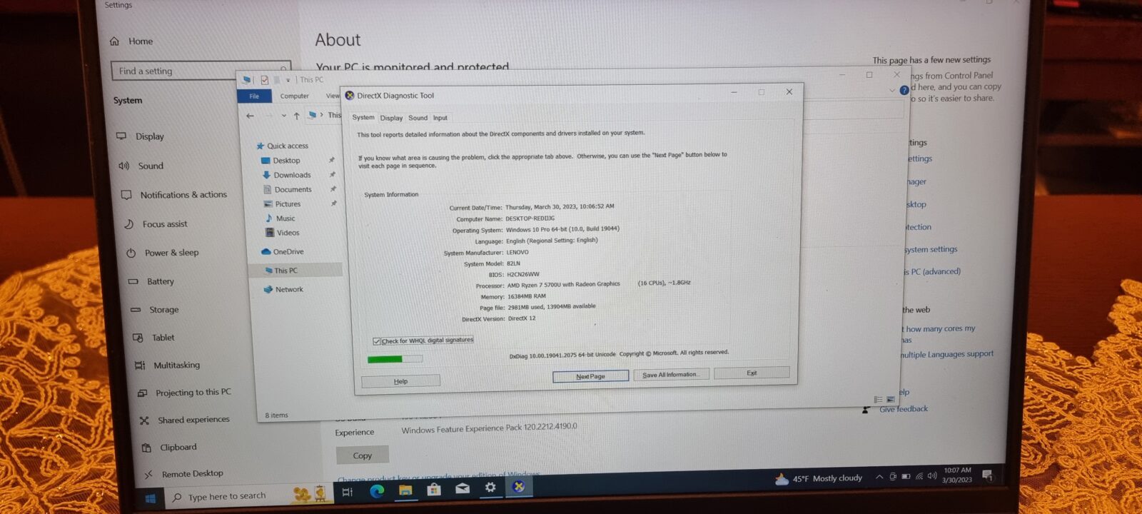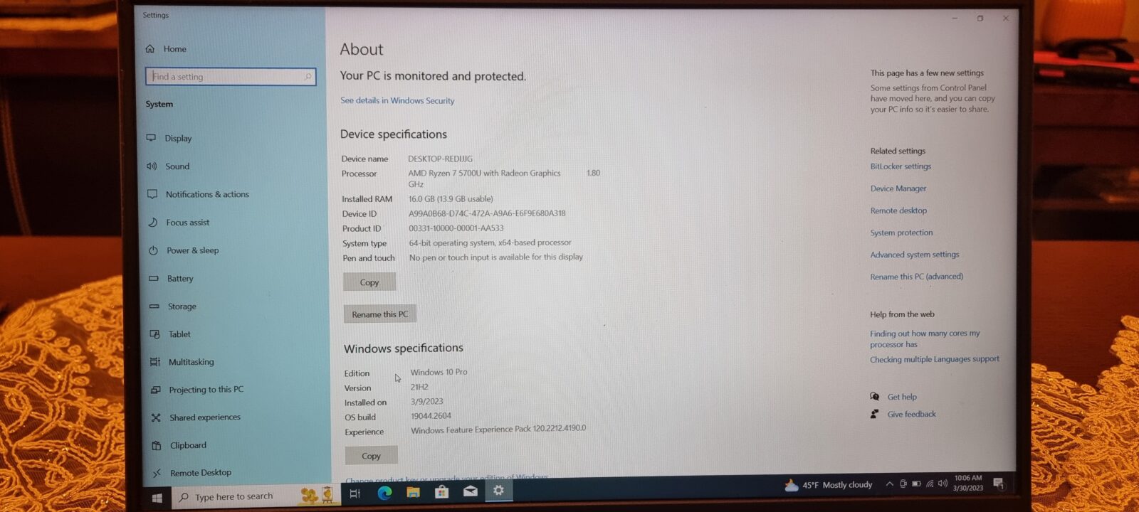 • Processor: Ryzen 7 5700U 16 CPUs