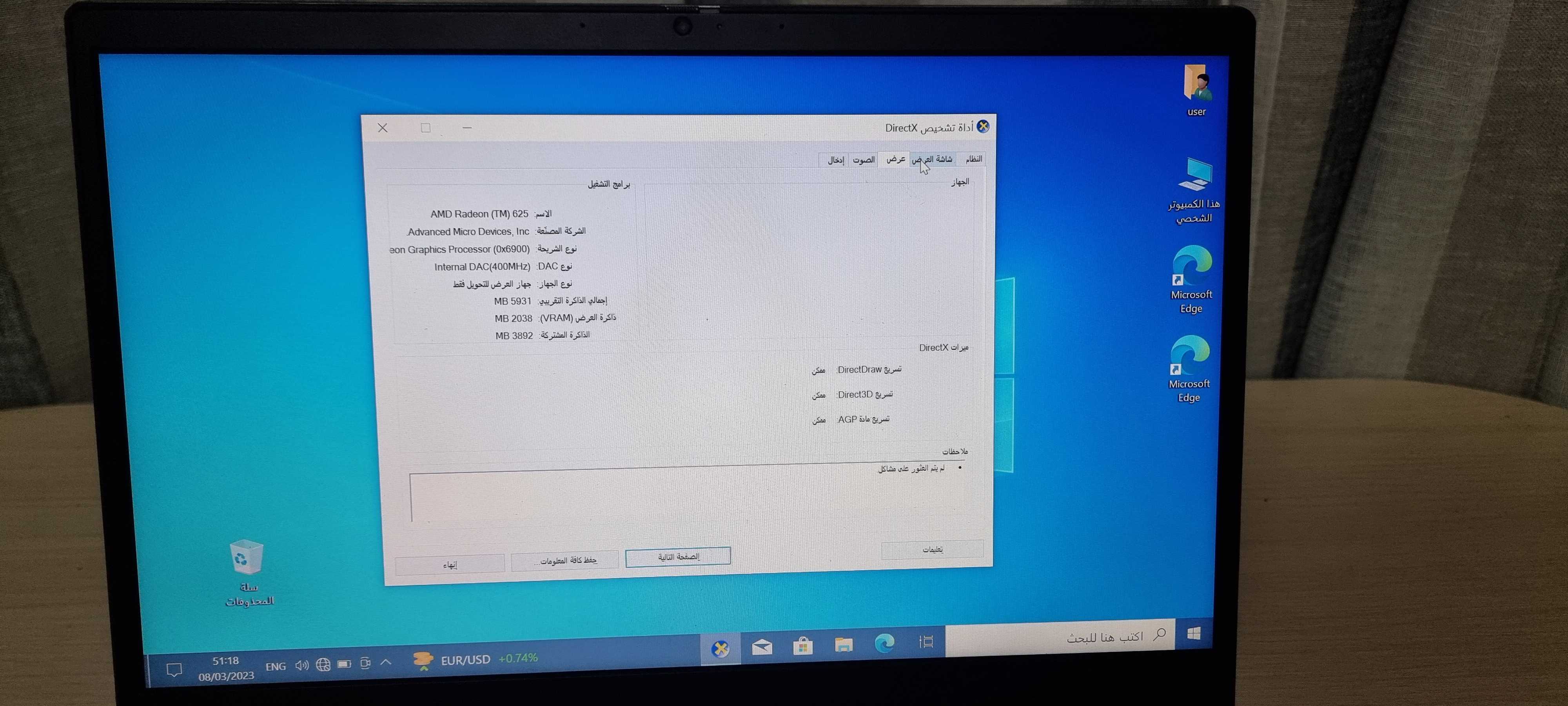 • Graphics: AMD Radeon 620 2GB GDDR5