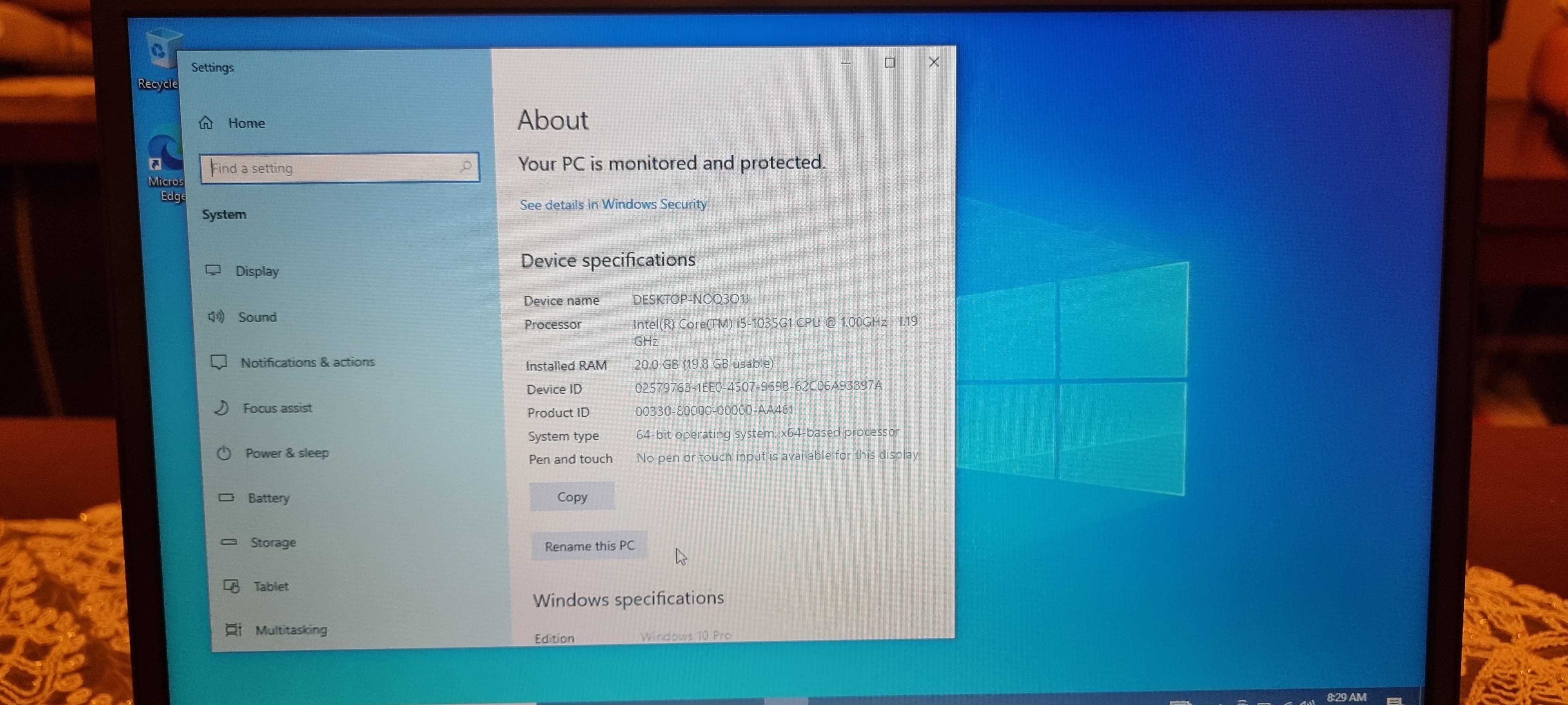 • Processor: Intel i5-1035G1 processor, base speed 1.0 Ghz, max speed 3.6 Ghz, 4 Cores, 6 MB smart cache