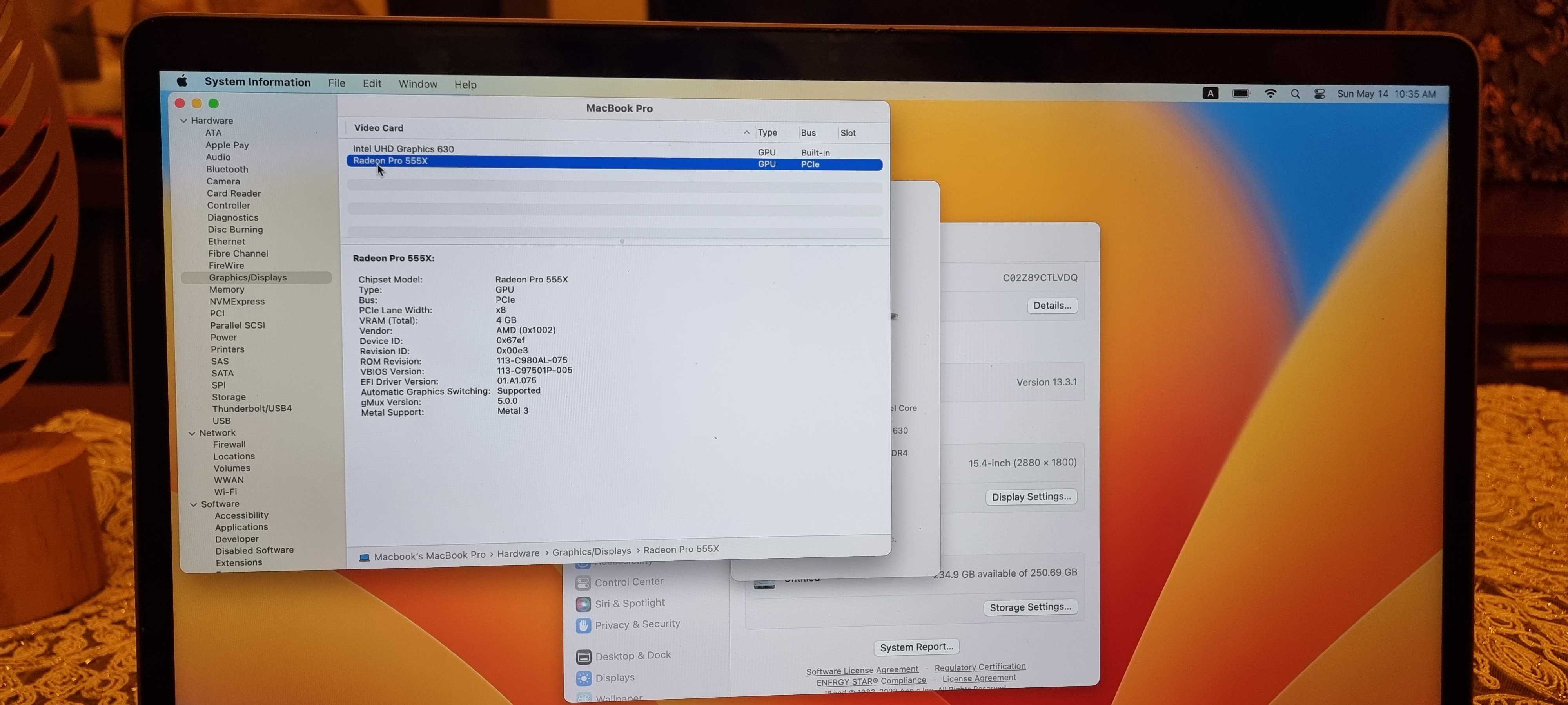Radeon Pro 555X with 4GB of GDDR5 memory and automatic graphics switching
