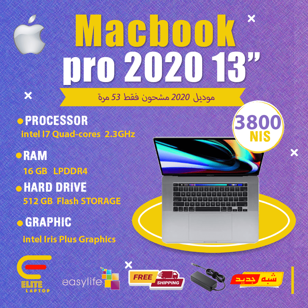 MacBook Pro 2020 i7 13″ (مع كرتونة)
