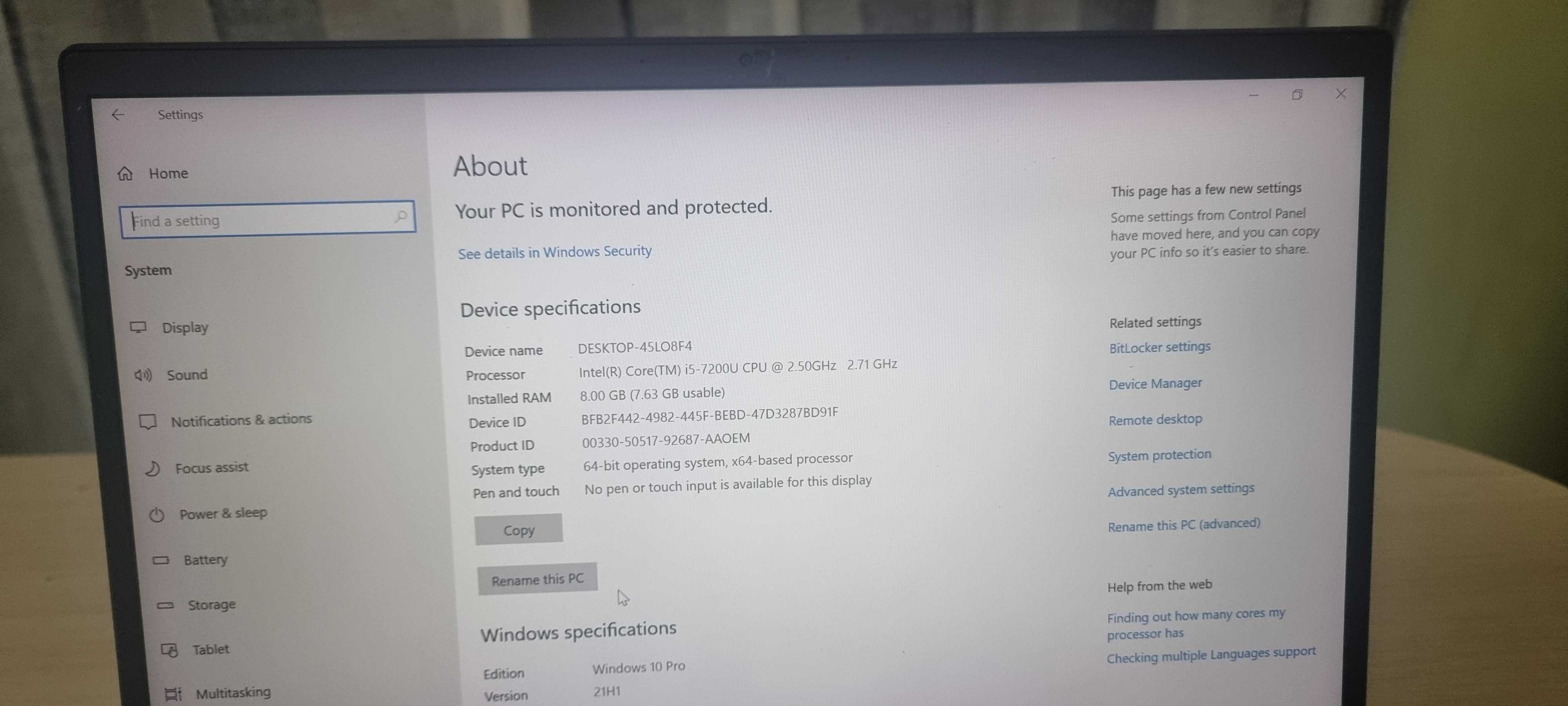 - Intel Core i5-7265U Quad-core 1.60GHz (Up to 3.90GHz) Processor
